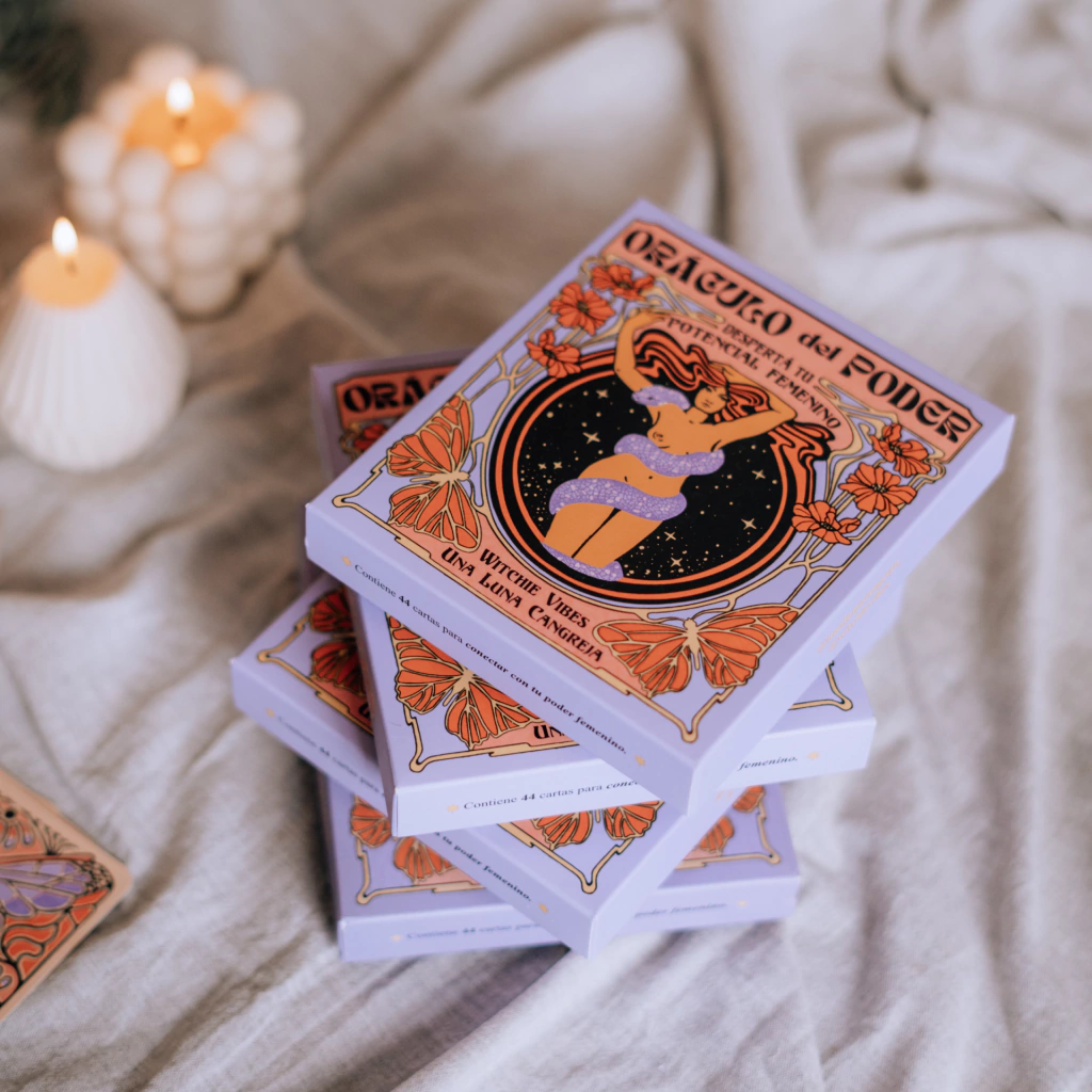El oráculo del poder contiene 44 cartas con mensajes para conectar con tu poder femenino. Mi intención es que puedas usarlo para consultar sobre alguna situación puntual o simplemente recibir un mensaje cada vez que lo necesites.